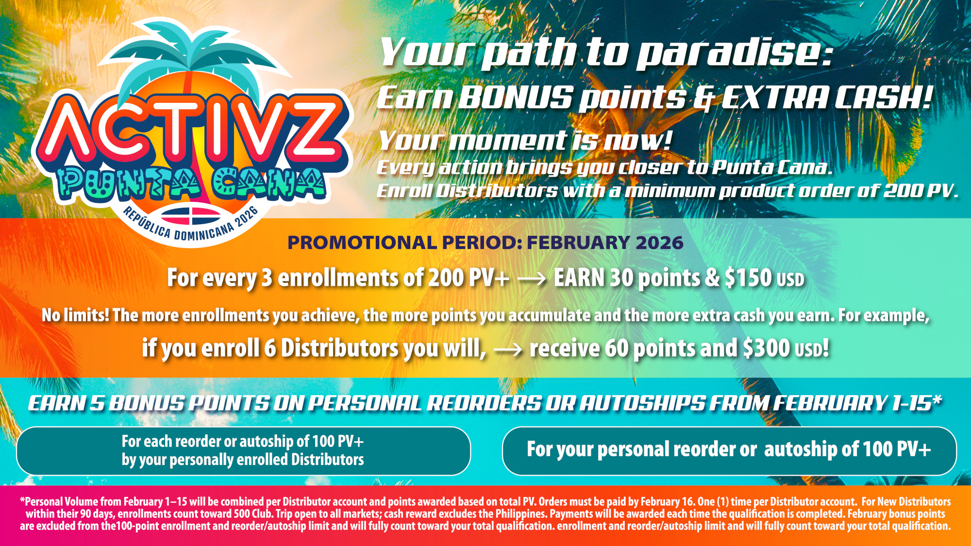 1. Enroll New Distributors or Preferred Customers with a minimum of 100 PV+